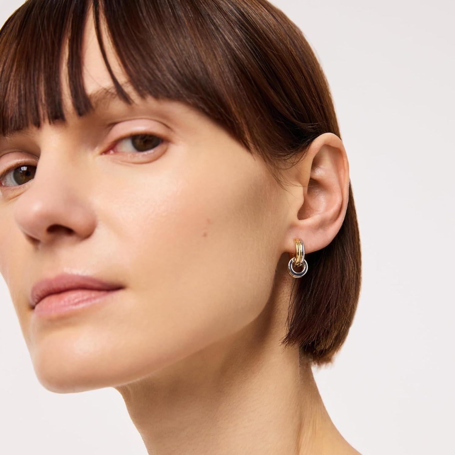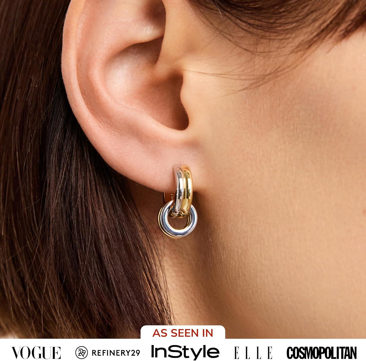 Ana Luisa Asher Small Huggie Hoop Earrings for Women – 14K Gold Plated, Silver Rhodium Plated and Two Tone Styles – Hypoallergenic, Tarnish-Free – Ana Luisa Jewelry – Stylish Gold Hoop Earrings(Drop Earring – Two Tone)