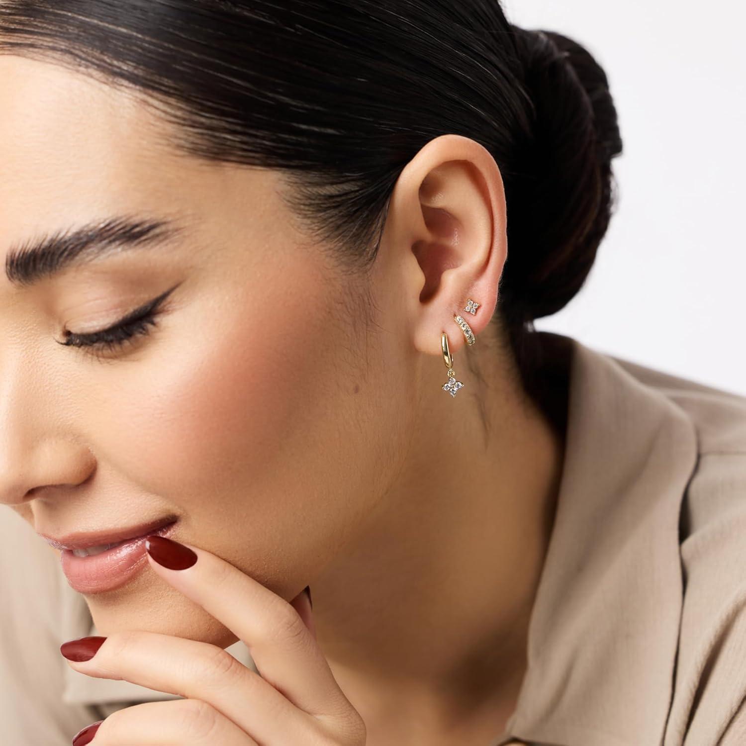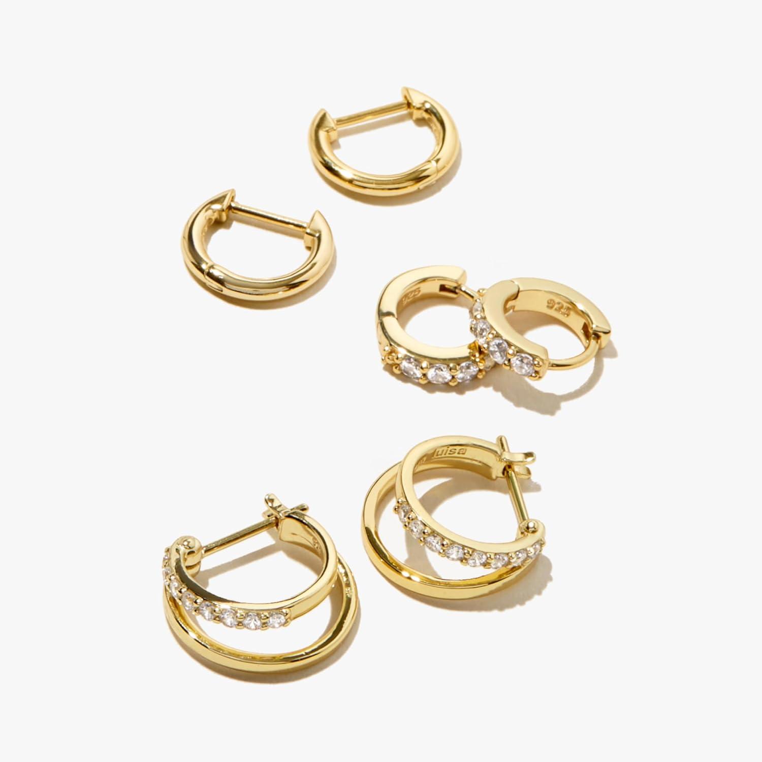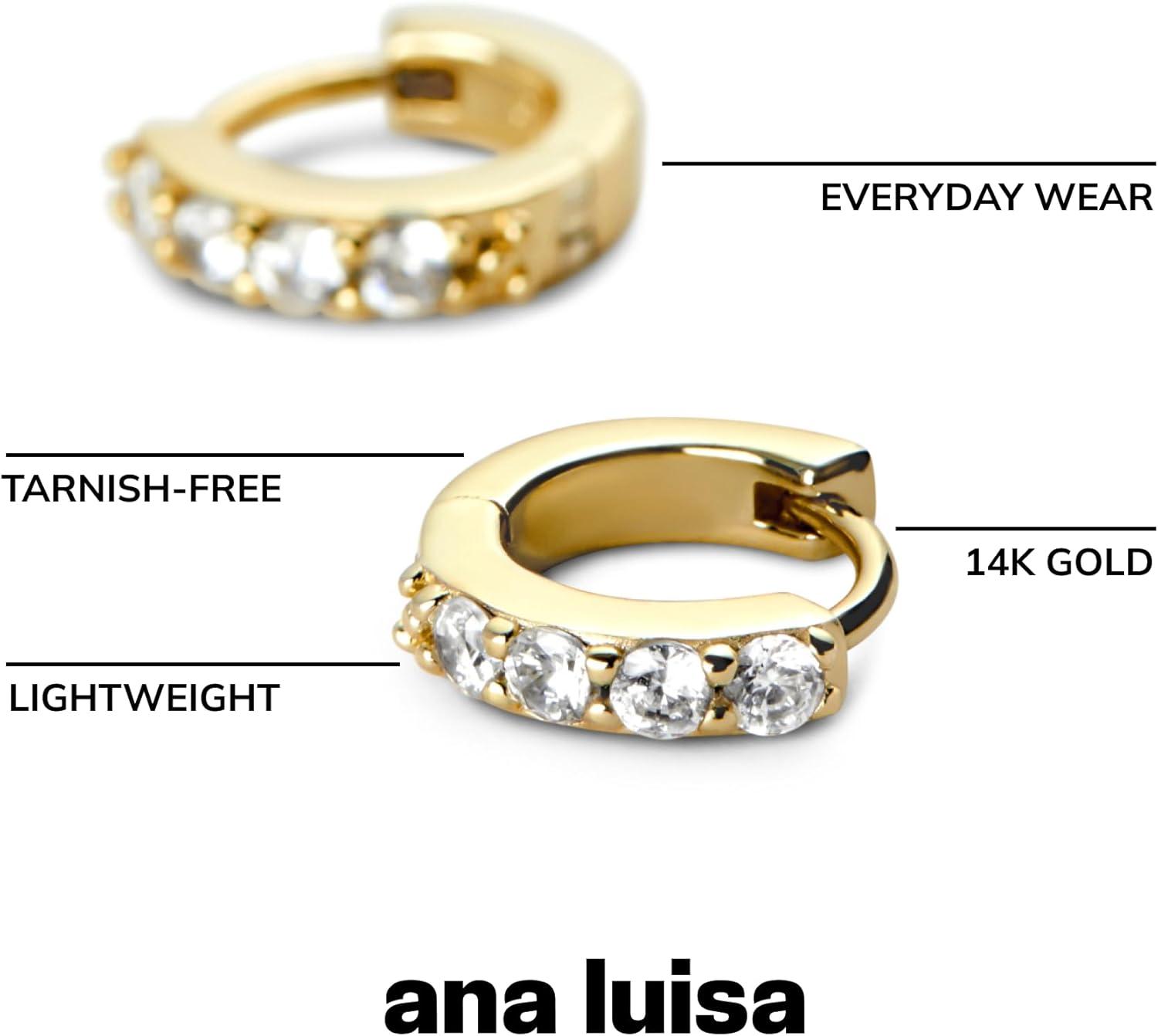 Ana Luisa Huggie Hoop Earrings – Minimal Single & Stacked Double Hoop Styles for Women – 14K Gold Plated, Silver Rhodium & Two-Tone – Hypoallergenic, Water-Resistant, Tarnish-Free(Mini-Gold Pave)