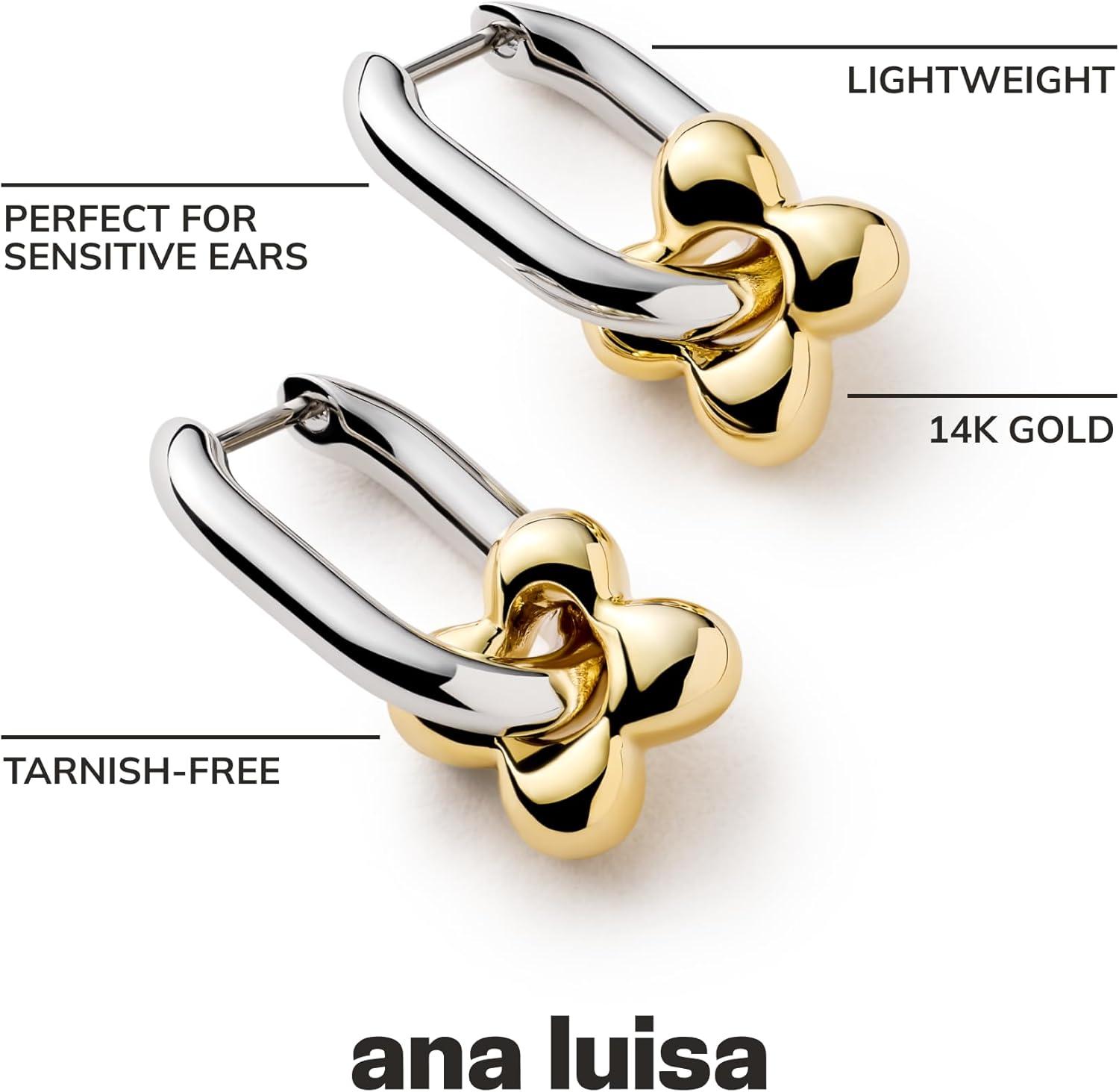 Ana Luisa Huggie Hoop Earrings – Solitaire Pendant Charm Earring – Dainty Hoop Earrings in 14K Gold Plated & Silver Rhodium Plated – Hypoallergenic, Water-Resistant, and Tarnish-Free – Gifts for Women(Cassia Two Tone)