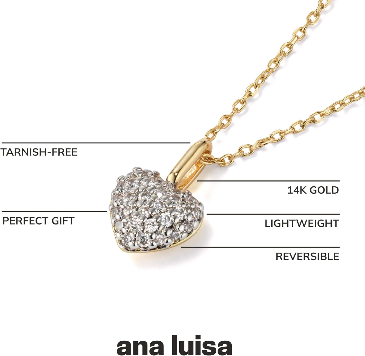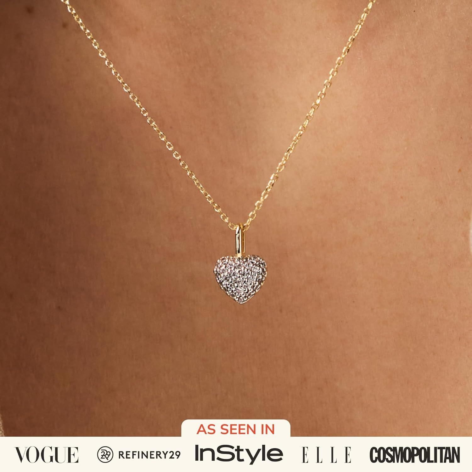 Ana Luisa Lev Puffy Heart Necklace for Women – Paperclip Chain w/ 14K Gold Plated & Silver Rhodium Plated Small Puffed Heart Pendant – Hypoallergenic, Water-Resistant, Tarnish-Free Jewelry(Cubic Zirconia)