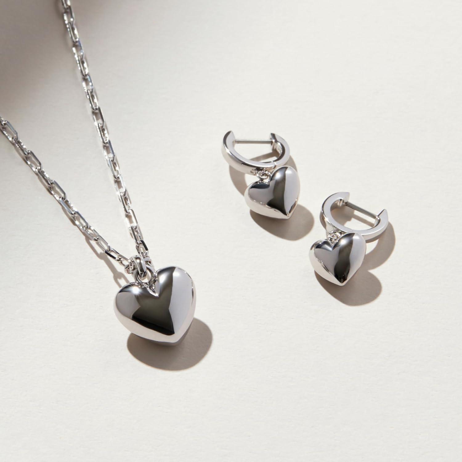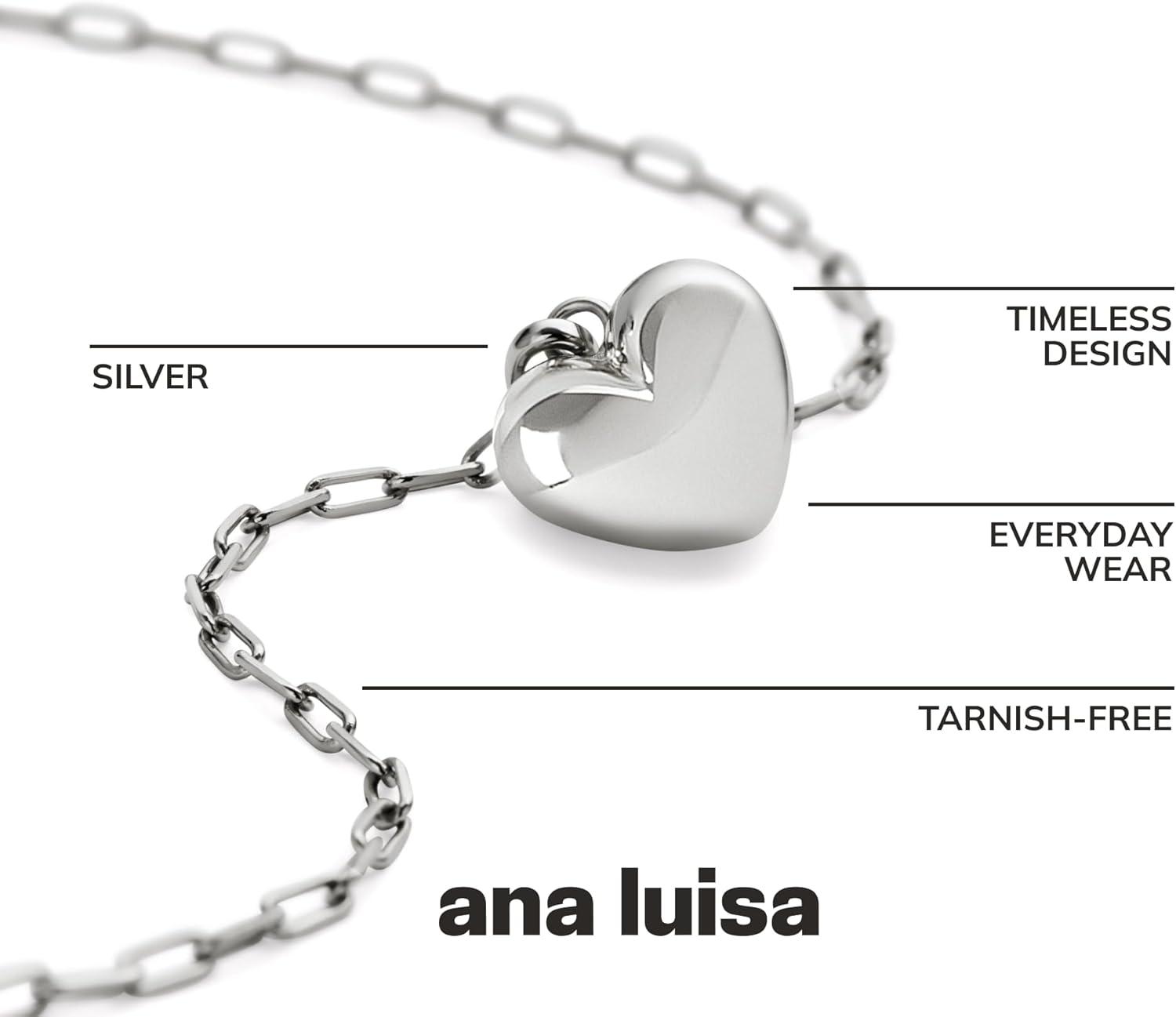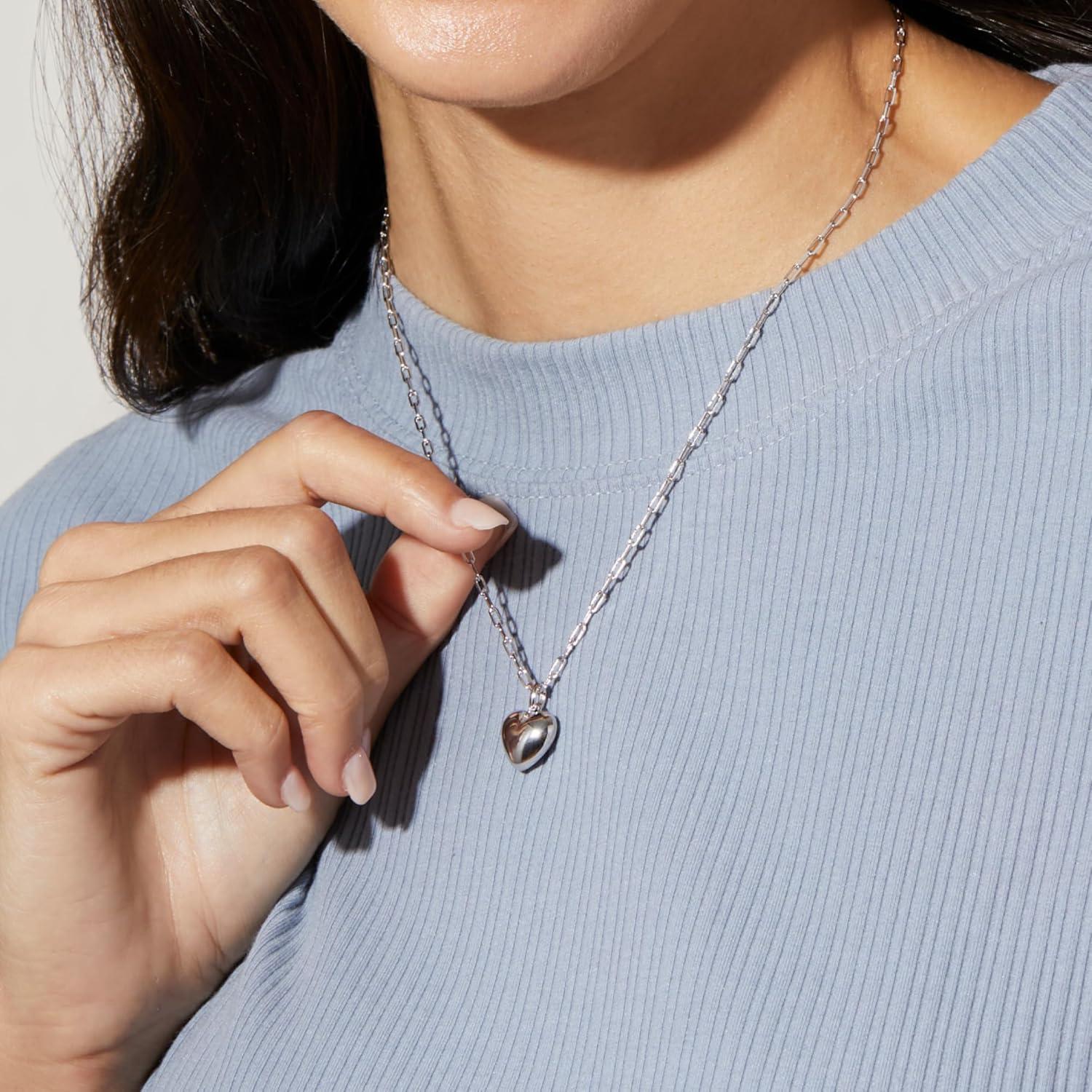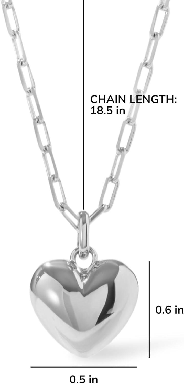 Ana Luisa Lev Puffy Heart Necklace for Women – Paperclip Chain w/ 14K Gold Plated & Silver Rhodium Plated Small Puffed Heart Pendant – Hypoallergenic, Water-Resistant, Tarnish-Free Jewelry(Paperclip Chain – Silver)