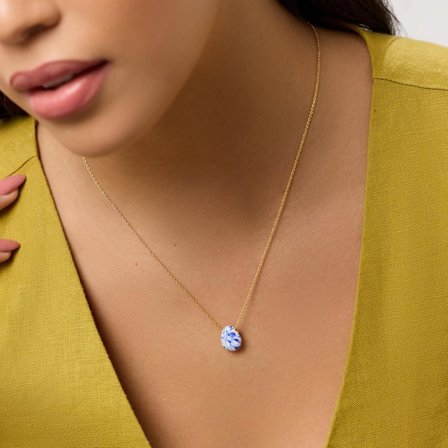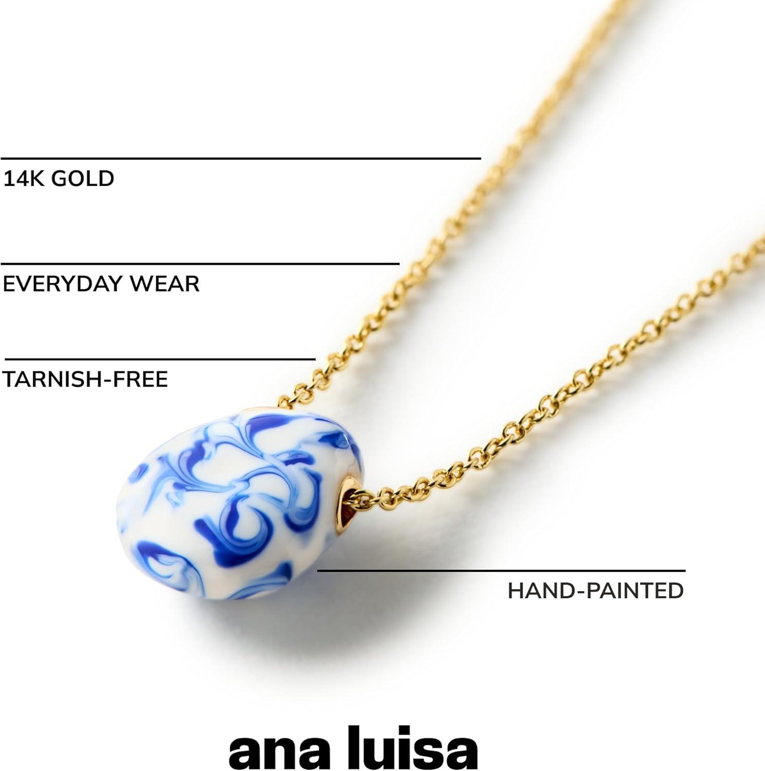 Ana Luisa Pebble Pendant Necklace for Women – 14K Gold Plated and Silver Rhodium Plated Trendy Teardrop Necklace with Lobster Clasp – Hypoallergenic, Water-Resistant, Tarnish-Free Jewelry(Mini-Marble Blue)